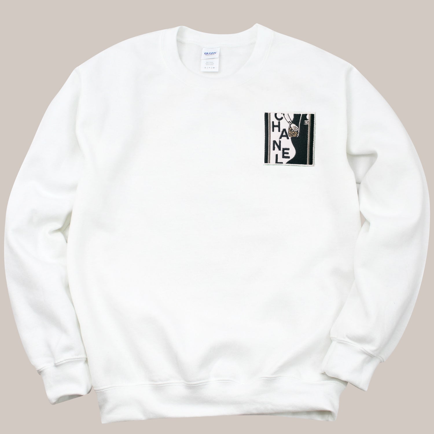 Unisex Sweatshirt with embroidered patch design. Size up for an oversized fit.